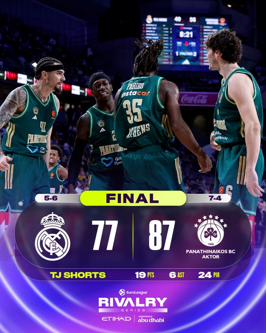 Στο τέταρτο δεκάλεπτο το πλάνο του Αταμάν εφαρμόστηκε με ακρίβεια. Ο ρυθμός έπεσε, η άμυνα παρέμεινε σκληρή και η Ρεάλ δεν μπόρεσε σε κανένα σημείο να απειλήσει πραγματικά. Με σωστές επιλογές στα κρίσιμα σημεία, οι «πράσινοι» κράτησαν τη διαφορά ασφαλείας και πανηγύρισαν ένα ιστορικό «διπλό» με 87-77 μέσα στη Μαδρίτη.