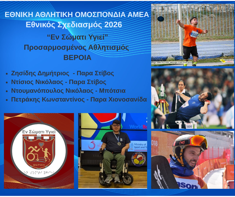 Ανακοινώθηκαν από την Εθνική Αθλητική Ομοσπονδία ΑμεΑ τα κριτήρια ένταξης και η ονομαστική λίστα των αθλητών και αθλητριών που εντάσσονται στον Εθνικό Σχεδιασμό Θερινών Παρα Αθλημάτων για το 2026. Είχε προηγηθεί τις προηγούμενες ημέρες η ανακοίνωση των αθλητών/τριων των Χειμερινών Αθλημάτων, όπου περιλαμβανόταν και ο αθλητής para snowboard από τη Βέροια Κωνσταντίνος Πετράκης (σχετικά ΕΔΩ).