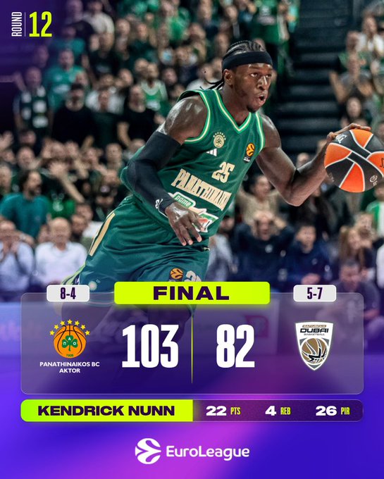 Ο Παναθηναϊκός χρειάστηκε ένα ημίχρονο για να «ζεσταθεί», αλλά από το 25ο λεπτό και μετά ήταν πραγματικά ασταμάτητος, φτάνοντας σε επιβλητική νίκη με 103-82 επί της Ντουμπάι BC. Παρά τον πρόωρο τραυματισμό του Οσμάν στο πρώτο οκτάλεπτο και τα τρία γρήγορα φάουλ του Ερνανγκόμεθ που τον κράτησαν στον πάγκο για πάνω από 12 λεπτά, οι «πράσινοι» παρουσίασαν τρομακτική εικόνα σε άμυνα και επίθεση στο δεύτερο μισό, μετατρέποντας μια αμφίρροπη μάχη σε εύκολη επικράτηση. Με αυτό το αποτέλεσμα, το «τριφύλλι» ανέβηκε στο 8-4 και πανηγύρισε το τρίτο συνεχόμενο ροζ φύλλο, ενώ η ομάδα του Γκόλεματς υποχώρησε στο 5-7, γνωρίζοντας την πέμπτη σερί ήττα της.