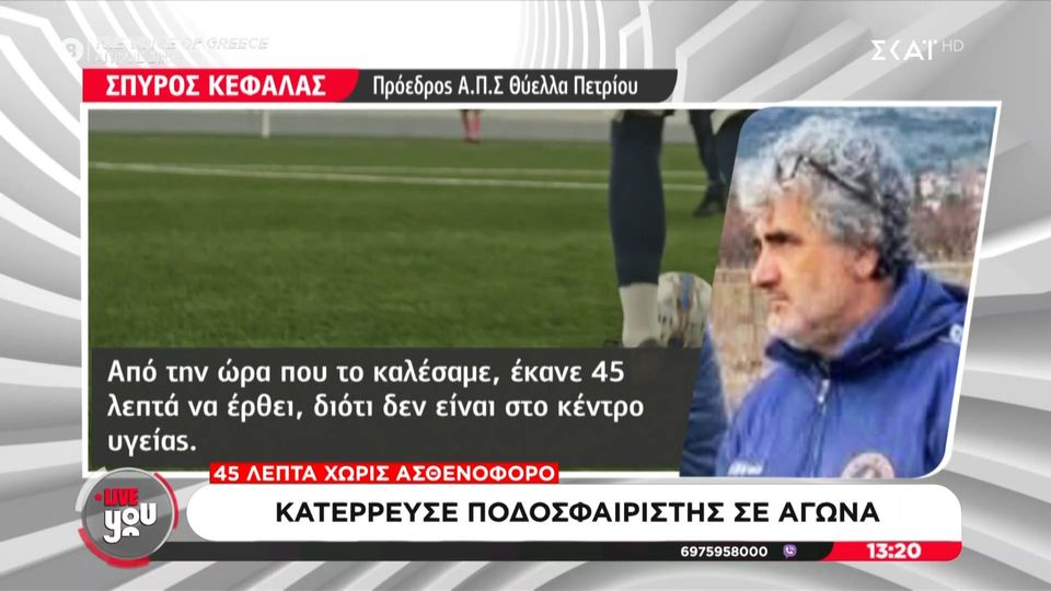 Το σοκαριστικό περιστατικό με τον νεαρό ποδοσφαιριστή της Θύελλας Πετρίου, που κατέρρευσε στον αγώνα του Σαββάτου και έμεινε 45 ολόκληρα λεπτά χωρίς ασθενοφόρο, έχει προκαλέσει κύμα αγανάκτησης στη Νεμέα. Παρότι η περιοχή διαθέτει Κέντρο Υγείας, η υποστελέχωση και η απουσία μόνιμου ασθενοφόρου αναγκάζουν τις διακομιδές να εξαρτώνται από την Κόρινθο – με ό,τι αυτό συνεπάγεται για έκτακτα περιστατικά.