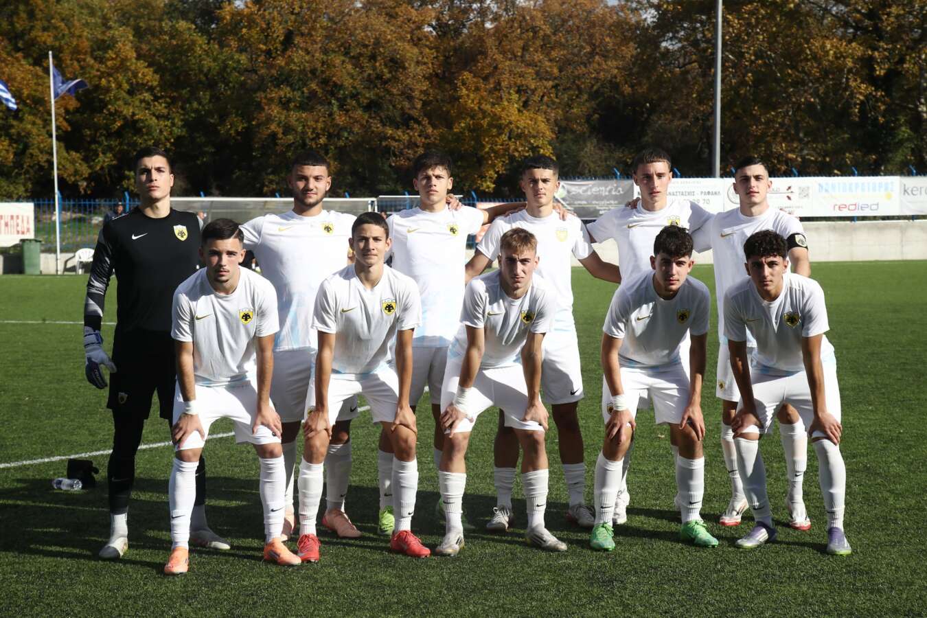 Η ΑΕΚ πραγματοποίησε μία από τις πιο ολοκληρωμένες εμφανίσεις της στη σεζόν, επικρατώντας με 4-1 του Άρη στο Φίλυρο για την 11η αγωνιστική του Πρωταθλήματος Κ17 της Super League 2025-26 και ανέβηκε προσωρινά στην κορυφή της βαθμολογίας. Ο Γιώργος Λαμπριανίδης (φωτ. κάτω στη μέση), με καταγωγή από την Ημαθία, αποτέλεσε έναν από τους πολυτιμότερους παίκτες του «Δικεφάλου», τρέχοντας ασταμάτητα και συμβάλλοντας καθοριστικά στο υψηλό τέμπο της ομάδας.