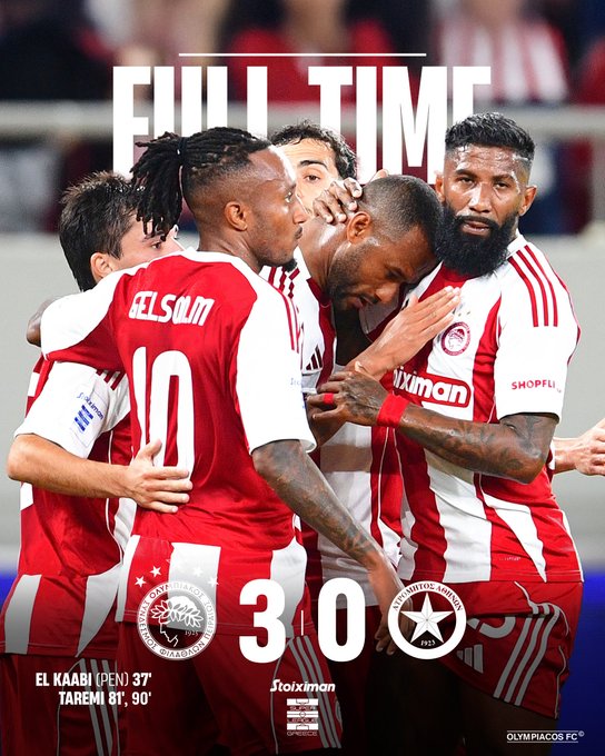 Ο Ολυμπιακός έκανε το καθήκον του στο «Γ. Καραϊσκάκης», επικράτησε με 3-0 του Ατρομήτου και επέστρεψε στην κορυφή της Super League, φτάνοντας τους 28 βαθμούς σε 11 αγωνιστικές. Οι «ερυθρόλευκοι» κυριάρχησαν από το πρώτο λεπτό, είχαν ρυθμό, ευκαιρίες και πρωταγωνιστές τους Ποντένσε, Ελ Καμπί και Ταρέμι, ενώ ο Ατρόμητος στο ντεμπούτο του Ντούσαν Κέρκεζ προσπάθησε να μείνει ανταγωνιστικός, αλλά λύγισε στο δεύτερο μέρος.
