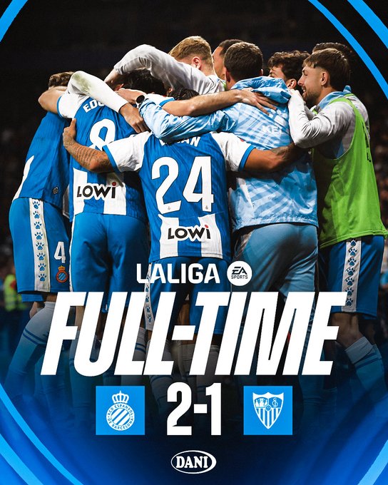Η Εσπανιόλ πήρε πολύτιμη νίκη με 2-1 απέναντι στη Σεβίλλη, σε ένα παιχνίδι όπου η ομάδα του Μανόλο Γκονθάλεθ άντεξε στην πίεση και «χτύπησε» στα κρίσιμα σημεία. Οι γηπεδούχοι άνοιξαν το σκορ στο 48’ με την κεφαλιά του Μίγια, εκμεταλλευόμενοι ιδανικά τη σέντρα του Ντόλαν. Στο 84’ ο Ρομπέρτο με εντυπωσιακό σουτ έγραψε το 2-0, δίνοντας προβάδισμα ασφαλείας, όμως η Σεβίλλη αντέδρασε μειώνοντας με κεφαλιά του Μαρκάο στο 86’.