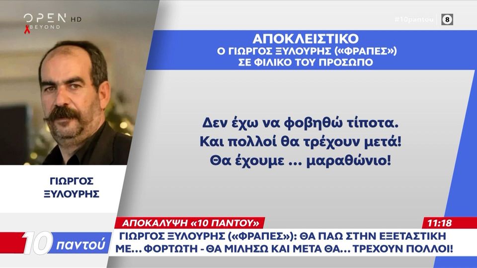«Στις 11 Δεκεμβρίου, στις 9 το πρωί θα είμαι στην εξεταστική επιτροπή της Βουλής. Δε θα χρειαστεί καμία βίαιη προσαγωγή. Θα πάω και θα μιλήσω. Θα πάω με φορτωτή γεμάτο με ντοσιέ, φακέλους και στοιχεία.Θα μιλήσω για όλους! Για όλους! Δεν έχω να φοβηθώ τίποτα. Και πολλοί θα τρέχουν μετά. Θα έχουμε μαραθώνιο», είπε σε φιλικό πρόσωπο, όπως μεταδόθηκε από το Open.