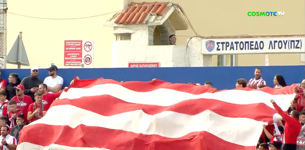 Η ΠΑΕ Ελλάς Σύρου βράβευσε τους Κώστα Καραπαπά και Γιώργο Πρίντεζη πριν το ματς για τη League Phase του Κυπέλλου Ελλάδας. Λίγο πριν την έναρξη, η κάμερα της Cosmote έκανε πλάνα από τις εξέδρες αλλά και από το διπλανό στρατόπεδο, όπου ο φαντάρος παρακολουθεί το ματς από την υπερυψωμένη σκοπιά!