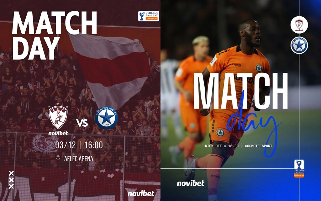 Μπορεί να είναι εικόνα κείμενο που λέει "ΚΥΠΕЛЛO ΕΛΛΑΔΑΣ betsson STARTING-XI 03/12|16:00 16:00 03/12 AELFC AELFCARENA ARENA I novibet 1_MELISSAS 4_ILIĄDIS 5_BAGALIANIS 6_PANTELAKIS 3_GROZOS 64_DELIGIANNIDIS 90_SOURLIS 31_ATANASOV 11_MOURGOS 29_TUPTA 19_PASAS 少 SUBS: COACH STELIOS MALEZAS ANDRADA, , CHATZISTRAVOS, ovibet FAISAL, FERI GIOUSIS, KOVACEVIC, PAPAGEORGIOU VARSAMIS, VENETIKIDIS, VIGNATO"