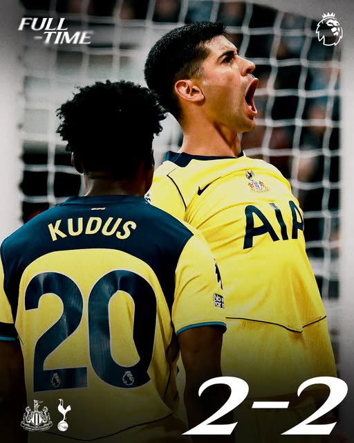 Σε ένα από τα πιο θεαματικά παιχνίδια της ημέρας στην Premier League, Νιούκαστλ και Τότεναμ έμειναν στο 2-2, με τις δύο ομάδες να προσφέρουν ένταση, ρυθμό και δραματικό φινάλε. Οι «καρακάξες» άνοιξαν το σκορ στο 71’ με τον Μπρούνο Γκιμαράες, επιβραβεύοντας την έντονη πίεση που άσκησαν στο δεύτερο ημίχρονο. Η απάντηση της Τότεναμ ήταν άμεση, καθώς ο Κριστιάν Ρομέρο ισοφάρισε στο 78’ με δυνατή κεφαλιά.