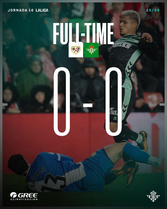 Οι δύο ομάδες, που φέτος αγωνίζονται στις League Phases των Conference και Europa League αντίστοιχα, είχαν τις στιγμές τους, με τους τερματοφύλακες Μπατάγια και Βάγιες να πρωταγωνιστούν κρατώντας ανέπαφες τις εστίες τους. Η Ράγιο πίεσε περισσότερο στο δεύτερο μέρος, η Μπέτις απάντησε στις αντεπιθέσεις, όμως το γκολ δεν ήρθε ποτέ. Με τον βαθμό της ισοπαλίας, οι φιλοξενούμενοι παραμένουν στην 6η θέση, ενώ η Ράγιο συνεχίζει στη μέση της βαθμολογίας, διατηρώντας επαφή με την ευρωπαϊκή ζώνη.