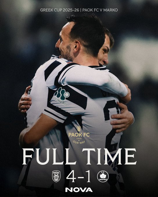 Με νίκη ολοκλήρωσε ο ΠΑΟΚ τη League Phase του Κυπέλλου Ελλάδας, επικρατώντας με 4-1 της Μαρκό στην Τούμπα, όμως το αποτέλεσμα δεν ήταν αρκετό για να του χαρίσει την 7η θέση και το πλεονέκτημα έδρας στα προημιτελικά. Ο «δικέφαλος» πλήρωσε ένα κρίσιμο γκολ που δέχθηκε στο δεύτερο ημίχρονο και έμεινε τελικά μία διαφορά τερμάτων μακριά από τον στόχο του.