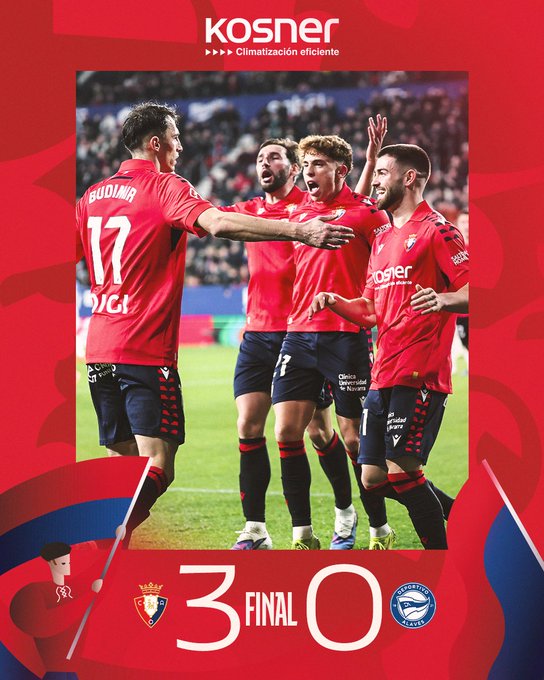 Η Οσασούνα καθάρισε την υπόθεση νίκη στο τελευταίο εικοσάλεπτο, επικρατώντας με 3-0 της Αλαβές. Μετά από ένα ισορροπημένο πρώτο μέρος χωρίς σκορ, οι γηπεδούχοι άνοιξαν το δρόμο στο 72’ με τον Μπουντιμίρ, ο οποίος εκμεταλλεύτηκε αδράνεια στην άμυνα. Ο ίδιος παίκτης διπλασίασε τα τέρματα στο 81’ από το σημείο του πέναλτι, «κλειδώνοντας» ουσιαστικά το ματς. Το τελικό 3-0 διαμόρφωσε στις καθυστερήσεις ο Ραούλ Γκαρθία, δίνοντας διαστάσεις στη νίκη της Οσασούνα, που ήταν πιο αποτελεσματική όταν βρήκε χώρους.