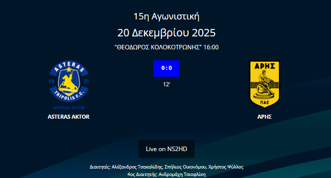 Αστέρας Τρίπολης – ΑΕΚ | 2-0 με το δεύτερο γκολ της Γκάτσου, αυτή την φορά από την άσπρη βούλα Σήμερα στις 15:20