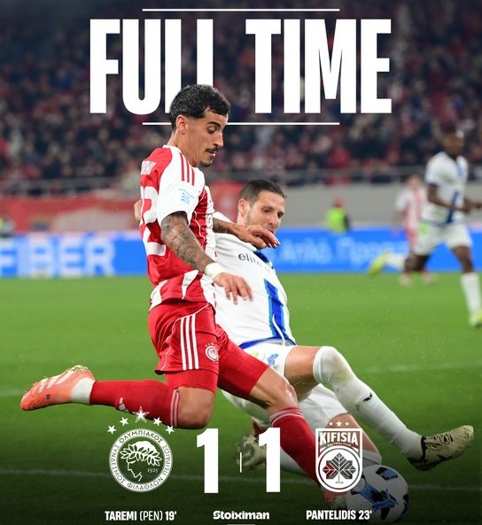 Οι Πειραιώτες προηγήθηκαν με πέναλτι του Ταρέμι στο 19’, όμως η απάντηση των φιλοξενούμενων ήρθε άμεσα, με τον Παντελίδη να ισοφαρίζει στο 23’.