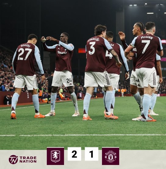 Η Άστον Βίλα συνεχίζει την εντυπωσιακή της πορεία στην Premier League, επικρατώντας 2-1 της Μάντσεστερ Γιουνάιτεντ στο «Βίλα Παρκ» και φτάνοντας τις 10 συνεχόμενες νίκες σε όλες τις διοργανώσεις. Πρωταγωνιστής ο Μόργκαν Ρότζερς, που σημείωσε δύο σχεδόν ίδια γκολ (45′-57′), ενώ ο Μπρούνο Φερνάντες αντικαταστάθηκε στο ημίχρονο (και ενώ ο Κούνια είχε ισοφαρίσει στις καθυστερήσεις), επηρεάζοντας την απόδοση της Γιουνάιτεντ.