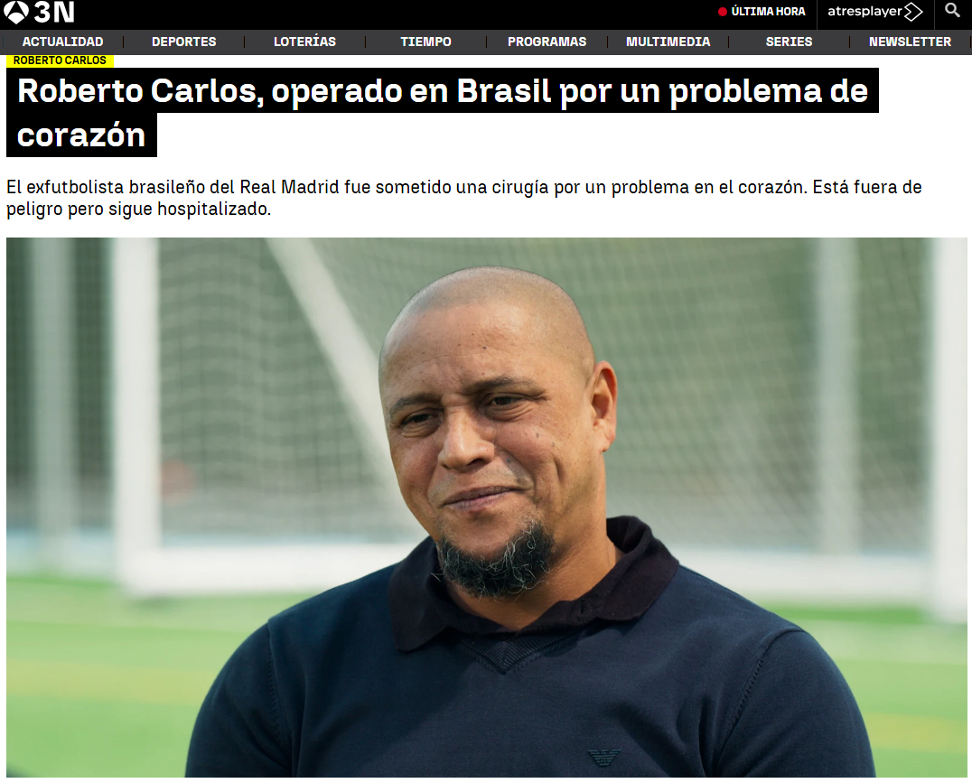 Στο νοσοκομείο φέρεται να μεταφέρθηκε εσπευσμένα ο Ρομπέρτο Κάρλος, σύμφωνα με όσα μετέδωσαν ισπανικά μέσα ενημέρωσης το πρωί της ίδιας ημέρας. Ο παλαίμαχος Βραζιλιάνος διεθνής και θρύλος της Ρεάλ Μαδρίτης φέρεται να υπέστη σοβαρό καρδιολογικό επεισόδιο, ενώ βρισκόταν στη Βραζιλία.