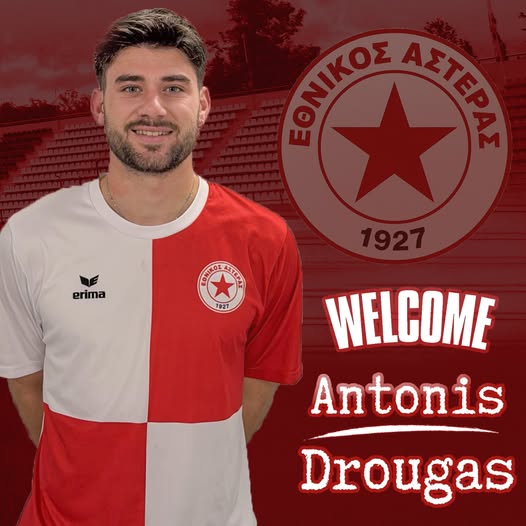 “Η διοίκηση του Εθνικού Αστέρα ανακοινώνει την έναρξη της συνεργασίας της με τον ποδοσφαιριστή Αντώνη Ντρούγκα. Ο γεννημένος στις 13/05/2001 παίκτης, ο οποίος αγωνίζεται με την ίδια ευχέρεια σε όλη την πτέρυγα της αμυντικής και επιθετικής γραμμής, εντάσσεται στο δυναμικό της ομάδας μας διαθέτοντας σημαντική εμπειρία και παραστάσεις από το πρωτάθλημα της Γ’ Εθνικής.