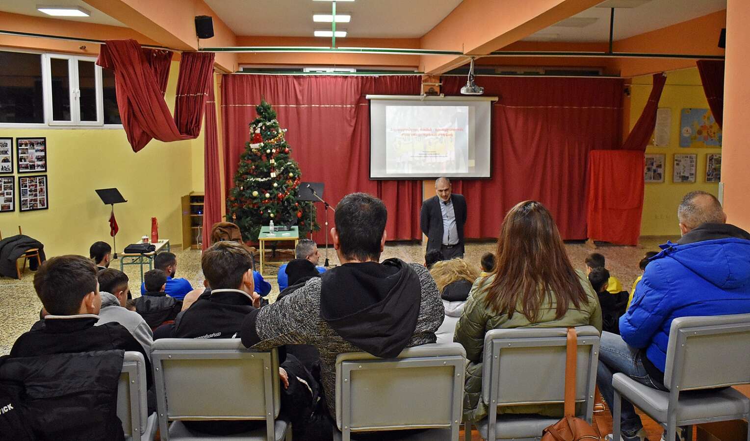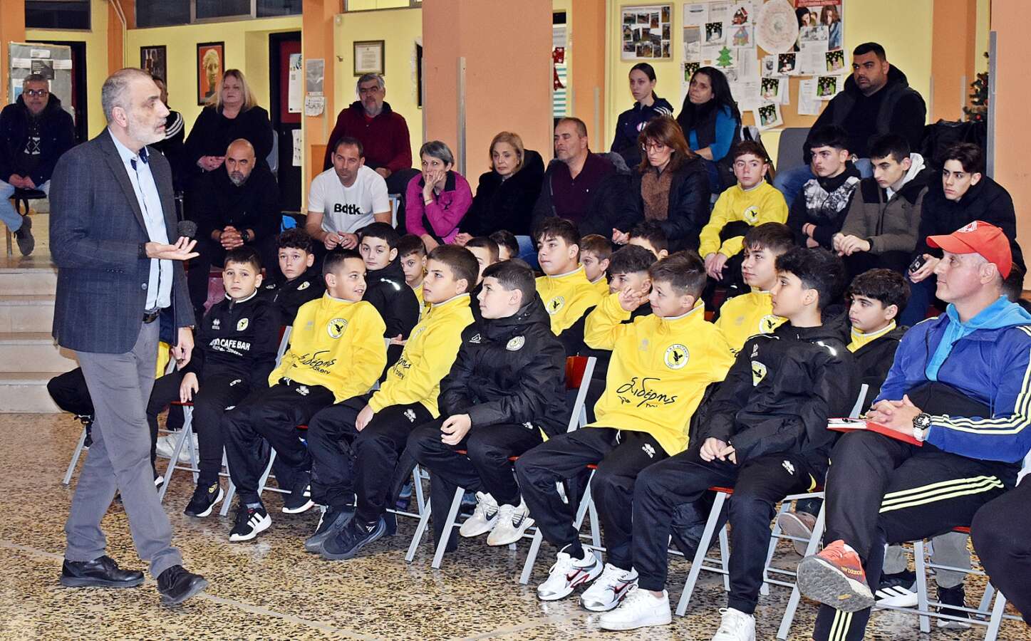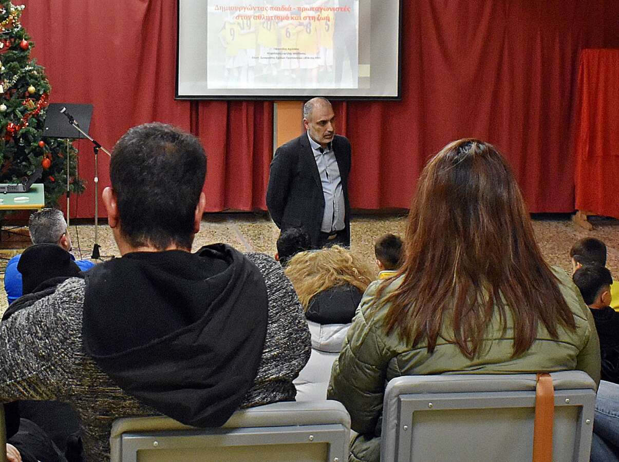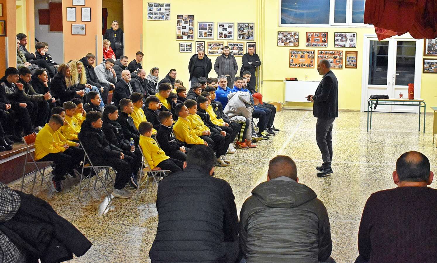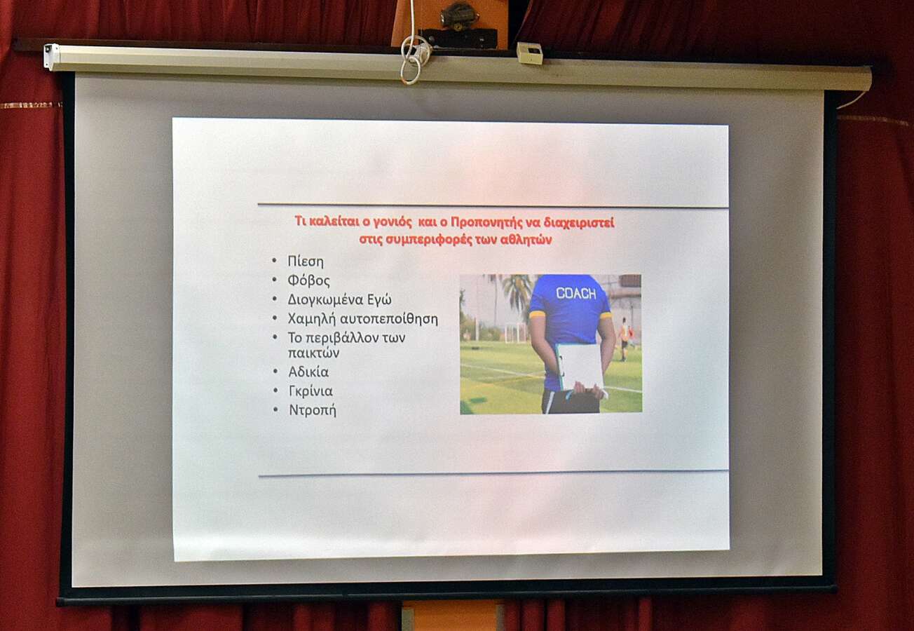 Με τη βοήθεια οπτικοακουστικού υλικού, παρουσίασε παραδείγματα και ανέλυσε διεξοδικά όσα οφείλουν να γνωρίζουν ποδοσφαιριστές, προπονητές και γονείς, με στόχο – πρωτίστως – τη διαμόρφωση σωστών ανθρώπων και στη συνέχεια ολοκληρωμένων αθλητών.