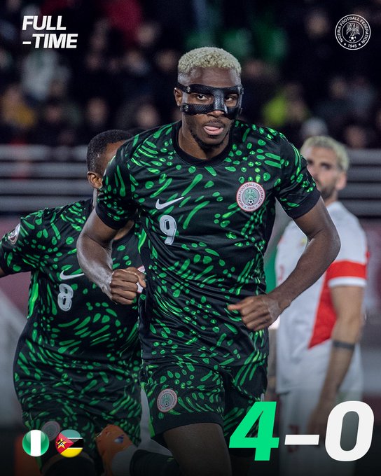 Στο 20’ ο Λούκμαν άνοιξε το σκορ έπειτα από άψογη συνεργασία Ιγουόμπι και Άκορ Άνταμς, ενώ στο 25’ ο ίδιος έγινε δημιουργός, δίνοντας την ασίστ στον Όσιμεν για το 2-0. Η μοναδική απειλή της Μοζαμβίκης ήρθε στο 35’ με την κεφαλιά του Φαϊζάλ που πέρασε άουτ.