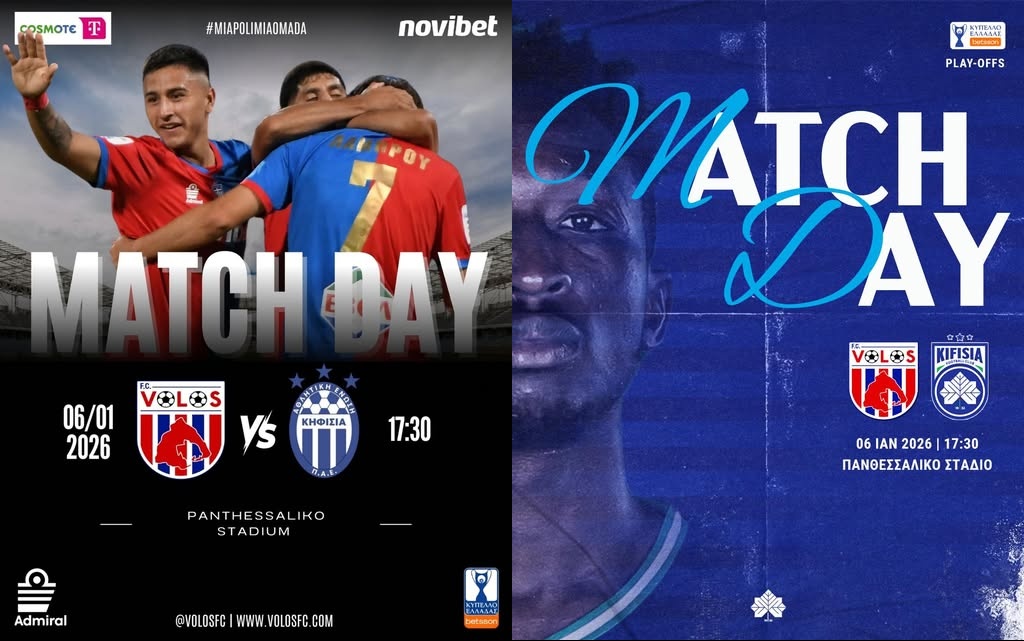 Κύπελλο Ελλάδος 06 Ιανουαρίου 2026 στις 16:47 #ΑΕ Κηφισιάς#ΝΠΣ Βόλος Οι 11άδες στο Βόλος – Κηφισιά (17.30) SHARE