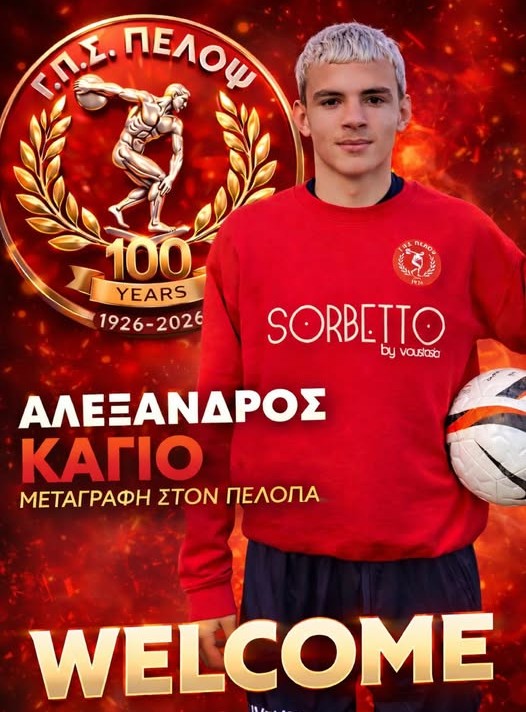 Ο Πέλοπας Κιάτου ανακοινώνει με χαρά την έναρξη της συνεργασίας του με τον ταλαντούχο ποδοσφαιριστή Αλέξανδρο Κάγιο για την τρέχουσα αγωνιστική περίοδο.