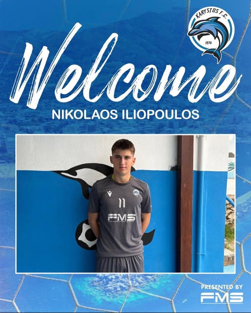 “Στον ΑΟ Καρύστου εντάσσεται ο Νικόλαος (Ίλαος) Ηλιόπουλος, ο οποίος υπέγραψε το νέο του συμφωνητικό με την ομάδα μας. Ο 18χρονος επιτελικός μέσος μυήθηκε στα μυστικά του ποδοσφαίρου μέσα από τις αναπτυξιακές ομάδες της ΠΑΕ ΑΕΚ.