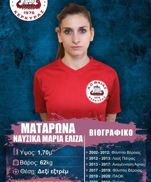 Στην Κέρκυρα και στον τοπικό Φαίακα θα συνεχίσει την καριέρα της η Ναυσικά Ματαρώνα. Η 31χρονη δεξιά εξτρέμ με καταγωγή από τη Βέροια, έχει πολυετή εμπειρία σε υψηλό επίπεδο στο χάντμπολ, έχοντας αγωνιστεί σε Φίλιππο Βέροιας, Λουξ Πάτρας, Αναγέννηση Άρτας, ΠΑΟΚ, Πυλαία και τον Μέγα Αλέξανδρο Γιαννιτσών. Η ένταξη στην ομάδα της Κέρκυρας, που αγωνίζεται στην Α2 Γυναικών, θα φέρει ταχύτητα και δημιουργία στην επίθεση της ομάδας, με στόχο την άνοδο στα “μεγάλα σαλόνια” του γυναικείου χάντμπολ.