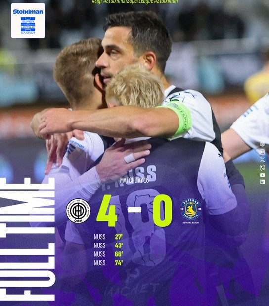 Με τον πλέον εκκωφαντικό τρόπο ολοκληρώθηκε το δεύτερο παιχνίδι της Κυριακής για τη 16η αγωνιστική της Super League, με τον ΟΦΗ να διαλύει τον Αστέρα AKTOR με 4-0 στο Ηράκλειο, λίγες ημέρες μετά τη νίκη του επί των Αρκάδων και στο Κύπελλο Ελλάδας. Απόλυτος πρωταγωνιστής της αναμέτρησης ο Νους, ο οποίος σημείωσε χατ-τρικ και ένα ακόμη γκολ, οδηγώντας τους Κρητικούς σε μία επιβλητική εμφάνιση.