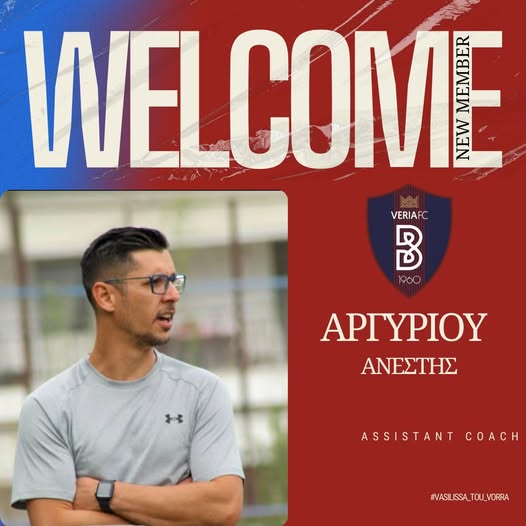 Στο προπονητικό επιτελείο της Βέροιας εντάχθηκε ο Ανέστης Αργυρίου, αναλαμβάνοντας καθήκοντα assistant coach. Ως ποδοσφαιριστής ξεκίνησε από τη Βέροια και αγωνίστηκε σε Πανθρακικό και ΑΕΚ, πριν συνεχίσει την καριέρα του στη Ρέιντζερς. Στην Ελλάδα φόρεσε ακόμη τις φανέλες των Εθνικού Άχνας, Ηρακλή, ΦΑΣ Νάουσα, Αγροτικού Αστέρα και Αλμωπού Αριδαίας. Είναι κάτοχος διπλώματος UEFA B και βρίσκεται στο τελικό στάδιο για την απόκτηση του UEFA A, αποτελώντας άμεσο συνεργάτη του Δημήτρη Πρίντζιου.