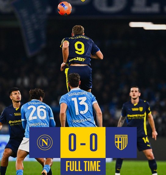 Σημαντική γκέλα για τη Νάπολι στο εξ αναβολής παιχνίδι της 16ης αγωνιστικής της Serie A, καθώς έμεινε στο 0-0 με την Πάρμα στο «Ντιέγκο Μαραντόνα» και δεν κατάφερε να εκμεταλλευτεί το μομέντουμ της. Το πολύτιμο 1-1 που είχε αποσπάσει την προηγούμενη αγωνιστική στο «Σαν Σίρο» απέναντι στην Ίντερ, ουσιαστικά «σβήστηκε», αφού οι «παρτενοπέι» έχασαν την ευκαιρία να πλησιάσουν ακόμη περισσότερο την κορυφή.