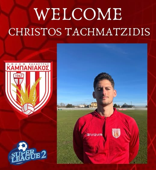 Σε μια κίνηση με ξεκάθαρο αγωνιστικό στόχο προχώρησε ο Καμπανιακός, ανακοινώνοντας την απόκτηση του Χρήστου Ταχματζίδη, ενισχύοντας τη γραμμή κρούσης ενόψει της κρίσιμης συνέχειας και των play-out. Ο Θεσσαλονικιός επιθετικός επιστρέφει στους «Κόκκινους της Χαλάστρας», στην ομάδα από την οποία έκανε τα πρώτα του βήματα σε ανδρικό επίπεδο τη σεζόν 2017/18.