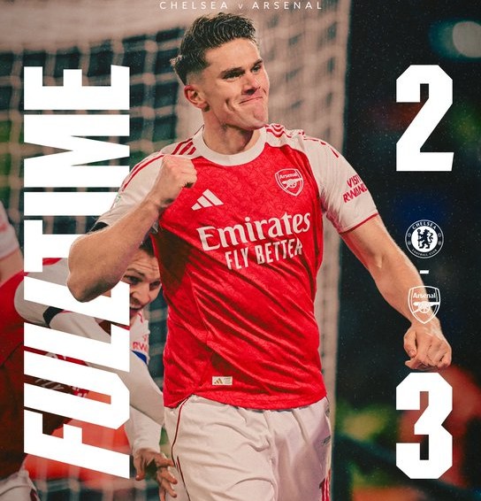 Η ομάδα του Μικέλ Αρτέτα εκμεταλλεύτηκε τις στατικές φάσεις και τα λάθη του Ρόμπερτ Σάντσεθ, σκοράροντας δύο φορές με τον Μπεν Γουάιτ και τον Βίκτορ Γκιόκερες, ενώ το τρίτο γκολ ήρθε από τον Μάρτιν Θουμπιμέντι στο 71’. Οι «μπλε», αν και γνώρισαν την πρώτη ήττα του Λίαμ Ροζίνιορ στον πάγκο τους, έμειναν «ζωντανοί» χάρη στα δύο γκολ του Αλεχάντρο Γκαρνάτσο, ο οποίος έδωσε νέα πνοή στην Τσέλσι ενόψει της ρεβάνς.