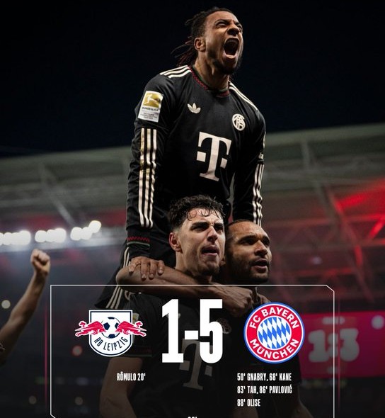 Η Μπάγερν Μονάχου έκανε ένα εκπληκτικό δεύτερο ημίχρονο και συνέτριψε τη Λειψία 5-1, φτάνοντας στην 16η νίκη της σε 18 αγώνες Bundesliga (2 ισοπαλίες).