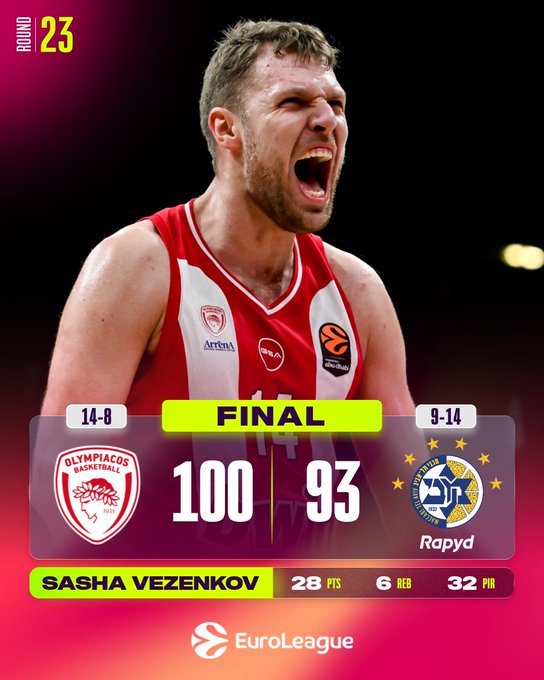 Με όπλο ένα εντυπωσιακό πρώτο ημίχρονο και πρωταγωνιστή για ακόμη μία φορά τον Σάσα Βεζένκοφ, ο Ολυμπιακός επικράτησε της Μακάμπι με 100-93, ανοίγοντας ιδανικά τη «διαβολοβδομάδα» της EuroLeague και συνεχίζοντας την πορεία του προς τις πρώτες θέσεις της βαθμολογίας.
