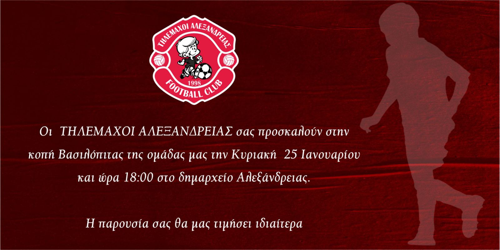 Η εκδήλωση θα πραγματοποιηθεί την Κυριακή 25 Ιανουαρίου και ώρα 18:00, στο Δημαρχείο Αλεξάνδρειας, με την Ακαδημία να απευθύνει ανοιχτό κάλεσμα σε αθλητές, προπονητές, γονείς και φίλους του συλλόγου.