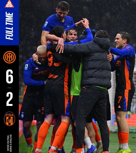 Στο δεύτερο μέρος, η Πίζα έμεινε ανταγωνιστική όσο η Ίντερ σπαταλούσε ευκαιρίες, όμως το «περιπετειώδες» γκολ του Ντι Μάρκο στο 81’ έκοψε κάθε ελπίδα. Ακολούθησαν το 5-2 από τον Μπονί και το τελικό 6-2 από τον Μικιταριάν, επισφραγίζοντας μια βραδιά επίδειξης δύναμης.