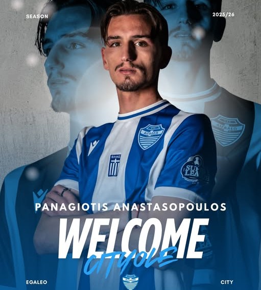 Στο ρόστερ του Αιγάλεω εντάσσεται ο Παναγιώτης Αναστασόπουλος. Ο 22χρονος (γεν. 24/10/2003) αριστεροπόδαρος στόπερ, ύψους 1.86 μ., προέρχεται από τον Νέστο Χρυσούπολης, όπου αγωνίστηκε στη Super League 2. Παλαιότερα έπαιξε στην Καβάλα αλλά και στα τμήματα υποδομής του Παναιτωλικού.