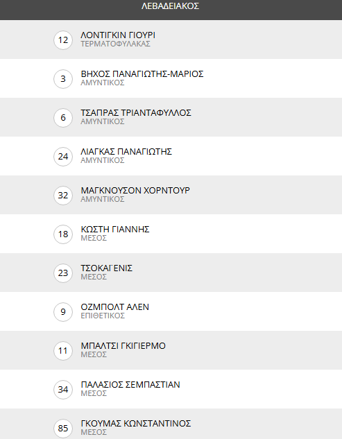 Οι 11άδες στο Άρης – Λεβαδειακός (16.00)