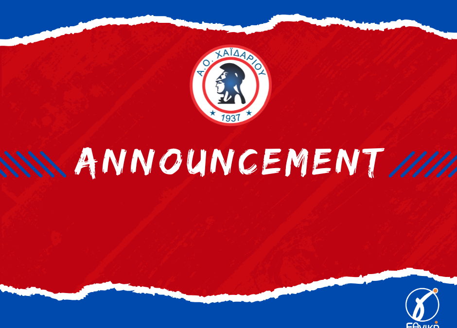 “Ο Πρόεδρος Μιχάλης Θεοδοσιάδης και το Διοικητικό Συμβούλιο του Α.Ο. Χαϊδαρίου ανακοινώνουν την απομάκρυνση του προπονητή, Θεόφιλου Καλύβα.