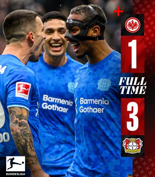 Στο Deutsche Bank Park, η Λεβερκούζεν επιβεβαίωσε την εξαιρετική της κατάσταση, επικρατώντας με 3-1 της Άιντραχτ Φρανκφούρτης. Η αντίπαλος του Ολυμπιακού στα play off του Champions League μπήκε δυνατά και άνοιξε το σκορ στο 26’ με τον Άρθουρ, ενώ στο 33’ ο Μάλικ Τίλμαν διπλασίασε τα τέρματα της ομάδας του. Η Άιντραχτ αντέδρασε στο δεύτερο ημίχρονο, μειώνοντας στο 50’ με τον Ρόμπιν Κοχ, όμως η Λεβερκούζεν διατήρησε τον έλεγχο και «καθάρισε» το ματς στις καθυστερήσεις με τον Αλέις Γκαρθία, φτάνοντας σε μια νίκη ουσίας και ψυχολογίας.
