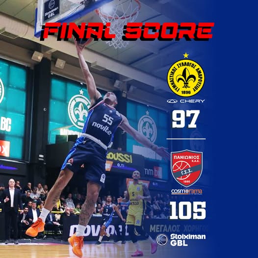 Ο Κινγκ είχε 0/2 βολές στα 40”, ενώ ο Τέιλορ έκανε το 95-101 με 2/2 βολές. Στα 25,5” είχε 2/2 βολές (97-101) ενώ στη συνέχεια ο Νικολαΐδης ευστόχησε για το 97-103 και αμέσως μετά έβγαλε και την άμυνα με τάπα που κατέληξε σε καλάθι του Πανιωνίου Cosmorama Travel για το τελικό 97-105!