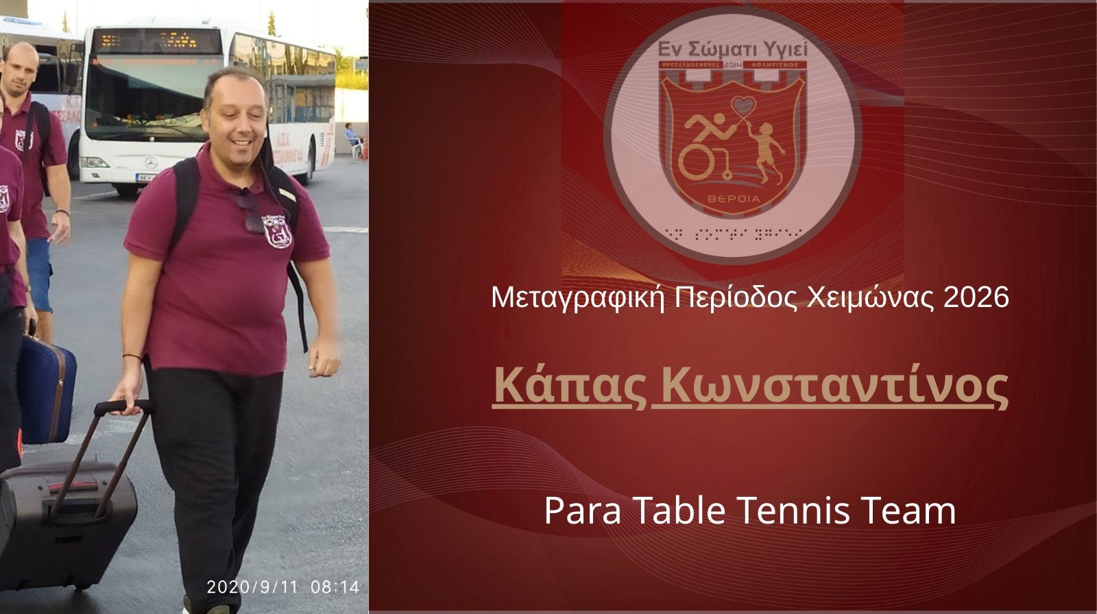 “Ανακοινώθηκε από την Εθνική Αθλητική Ομοσπονδία ΑμεΑ το Πρακτικό Μετεγγραφών της χειμερινής μεταγραφικής περιόδου 2026, οπότε με μεγάλη χαρά και ενθουσιασμό και με κάθε επισημότητα μπορούμε να ανακοινώσουμε πλέον ότι ο αθλητής Κάπας Κωνσταντίνος, ένα πολύτιμο μέλος της οικογένειας του “Εν Σώματι Υγιεί” επιστρέφει στην ομάδα μας μετά από απουσία πέντε ετών στο σωματείο “Τριπτόλεμος” Α.Σ. ΑμεΑ Ελευσίνας, φέρνοντας μαζί του την εμπειρία και το πάθος που τον χαρακτηρίζουν.