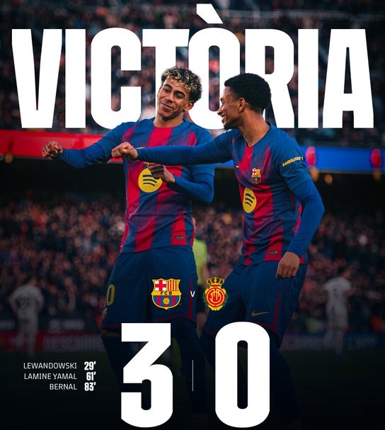Η Μπαρτσελόνα έκανε το καθήκον της απέναντι στη Μαγιόρκα, επικρατώντας με 3-0 στο «Καμπ Νόου» για την 23η αγωνιστική της La Liga και διατηρώντας τον έλεγχο στην κορυφή. Οι «μπλαουγκράνα» έφτασαν τις 19 νίκες στο πρωτάθλημα και τους 58 βαθμούς, αποκτώντας προβάδισμα τεσσάρων βαθμών από τη Ρεάλ Μαδρίτης, που αγωνίζεται την Κυριακή στη Βαλένθια.