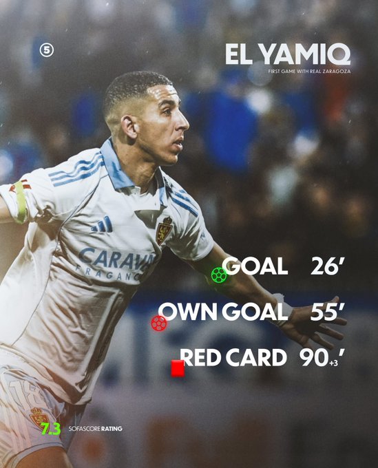 Ο 33χρονος Μαροκινός κεντρικός αμυντικός έκανε την πρώτη του εμφάνιση με τη φανέλα της Σαραγόσα και στο 26ο λεπτό φρόντισε να τη συνδυάσει ιδανικά, ανοίγοντας το σκορ και βάζοντας την ομάδα του σε θέση οδηγού. Ωστόσο, η συνέχεια ήταν εντελώς διαφορετική.