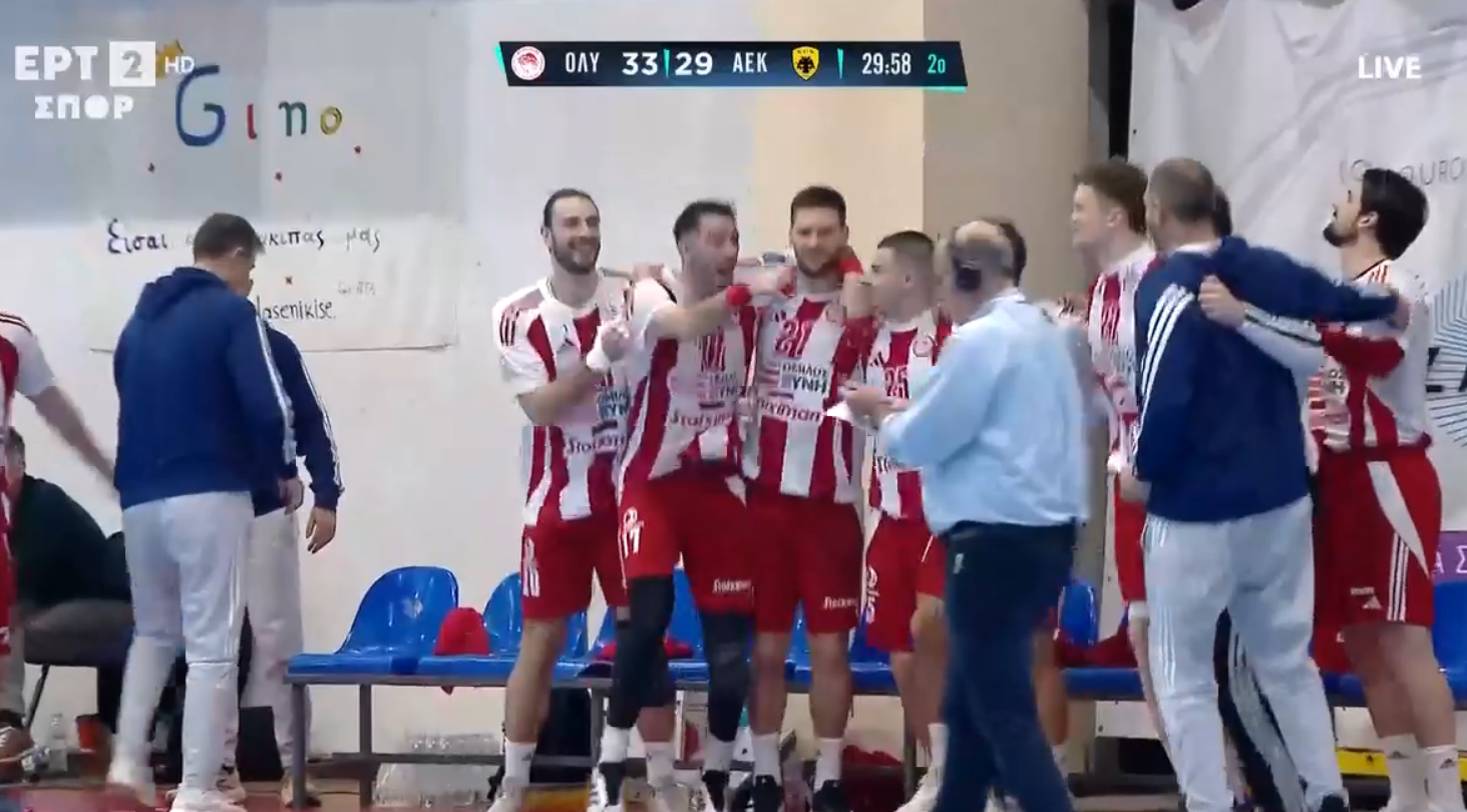 Η ομάδα του Ρικάρντο Τριλίνι έδειξε χαρακτήρα σε ένα παιχνίδι με διακυμάνσεις. Η ΑΕΚ μπήκε πιο δυνατά και προηγήθηκε δύο φορές με +3 στο πρώτο ημίχρονο (7-4 στο 12’, 9-6 στο 16’), όμως ο Ολυμπιακός αντέδρασε και ισοφάρισε 10-10 στο 20’. Παρ’ όλα αυτά, ο «Δικέφαλος» πήγε στα αποδυτήρια μπροστά με 16-15.