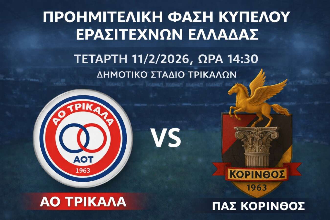 Οι συνθέσεις από το ΔΑΚ Τρικάλων (14.30 για την προημιτελική φάση του Κυπέλλου Ερασιτεχνών)