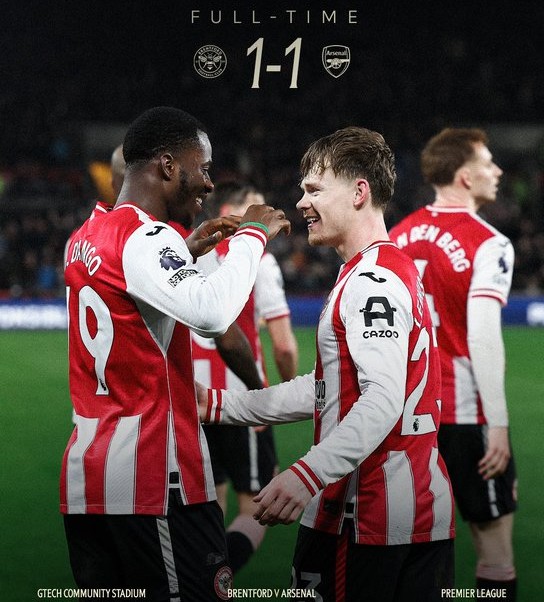 Η Άρσεναλ «κόλλησε» στο 1-1 στην έδρα της Μπρέντφορντ (12/02), χάνοντας πολύτιμους βαθμούς στην Premier League. Οι «κανονιέρηδες» προηγήθηκαν με κεφαλιά του Νόνι Ματουέκε στο 61’, όμως ο Κιν Λιούις-Πότερ ισοφάρισε στο 71’, διατηρώντας τους γηπεδούχους στο παιχνίδι. Το παιχνίδι είχε ένταση, με αρκετές φάσεις και κάρτες, ενώ οι αλλαγές των προπονητών προσπάθησαν να δώσουν φρεσκάδα στις ομάδες.