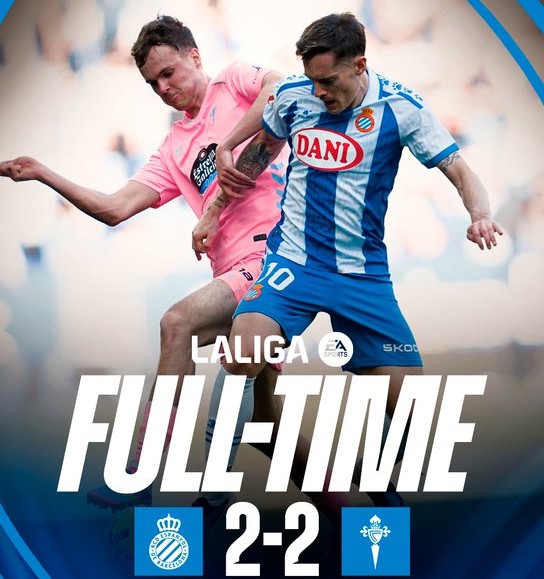 Η Θέλτα δεν επέτρεψε στην Εσπανιόλ να πανηγυρίσει την πρώτη της νίκη για το 2026, αποσπώντας ισοπαλία με γκολ στις καθυστερήσεις. Η αντίπαλος του ΠΑΟΚ, που εκτός έδρας παρουσιάζεται ιδιαίτερα αποτελεσματική φέτος, άνοιξε το σκορ στο 39ο λεπτό με εξαιρετική ομαδική προσπάθεια και όμορφο τελείωμα του Φεράν Ζουτγλά (0-1), το τρίτο του στη σεζόν και πρώτο μακριά από το Βίγκο.