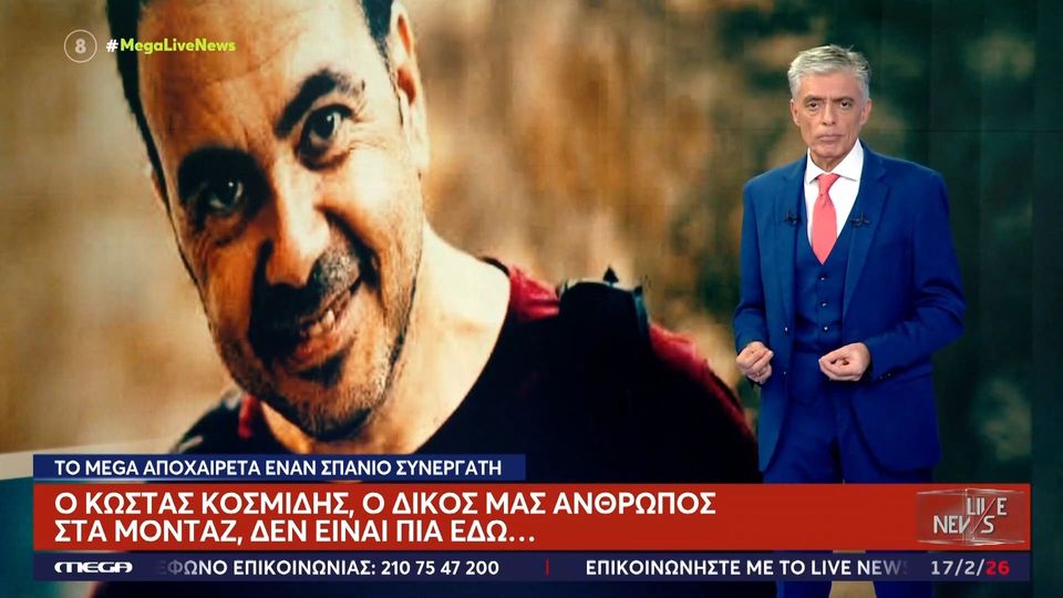 Θλίψη σκόρπισε στο MEGA ο θάνατος του μοντέρ Κώστα Κοσμίδη, ο οποίος “έφυγε” από την ζωή χθες Δευτέρα (16/02) σε ηλικία 52 ετών.