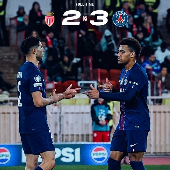Στο Πριγκιπάτο, η Μονακό μπήκε φουριόζα απέναντι στην Παρί Σεν Ζερμέν και προηγήθηκε 2-0 με δύο γκολ του Φολαρίν Μπάλογκουν (1’, 18’). Οι Παριζιάνοι είχαν την ευκαιρία να ξαναμπούν νωρίς στο παιχνίδι, όμως ο Φιλίπ Κεν απέκρουσε το πέναλτι του Βιτίνια. Η αντίδραση ήρθε με πρωταγωνιστή τον Ντεζιρέ Ντουέ, που μείωσε στο 29’, πριν ο Ασράφ Χακίμι ισοφαρίσει στο 41’. Στην επανάληψη, η αποβολή του Γκολόβιν στο 48’ άλλαξε τις ισορροπίες. Η Παρί πίεσε, δημιούργησε και στο 67’ ο Ντουέ υπέγραψε το 2-3, ολοκληρώνοντας μια σπουδαία ανατροπή που της δίνει προβάδισμα ενόψει της ρεβάνς.