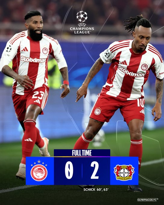 Στο 60’, ο Ταρέμι επιχείρησε τακουνάκι, η μπάλα στρώθηκε στον Ταπσόμπα και η Λεβερκούζεν έφυγε αστραπιαία στην αντεπίθεση. Ο Πόκου τροφοδότησε τον Σικ, που πλάσαρε ψύχραιμα για το 0-1. Πριν προλάβει να ανασυνταχθεί ο Ολυμπιακός, στο 63’ ο Σικ χτύπησε ξανά με κεφαλιά από κόρνερ του Γκριμάλντο (0-2), ολοκληρώνοντας ένα εφιαλτικό τρίλεπτο.