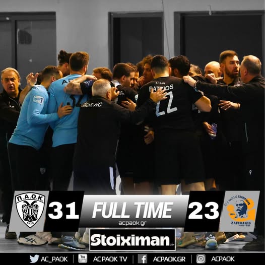 Ο ΠΑΟΚ άνοιξε την αυλαία της 17ης αγωνιστικής στη Handball Premier με πειστική νίκη επί του Ζαφειράκη Νάουσας (31-23), επιβεβαιώνοντας τον ρόλο του φαβορί. Οι φιλοξενούμενοι μπήκαν καλύτερα και διατήρησαν μικρό προβάδισμα στο πρώτο μέρος, κλείνοντας το ημίχρονο μπροστά (12-14). Στην επανάληψη όμως, η ομάδα του Ανανιάδη ανέβασε ρυθμό, βελτίωσε την άμυνα και με επιμέρους σερί γύρισε το παιχνίδι (20-18, 24-20), «καθαρίζοντας» ουσιαστικά το ματς στο τελευταίο δεκάλεπτο.